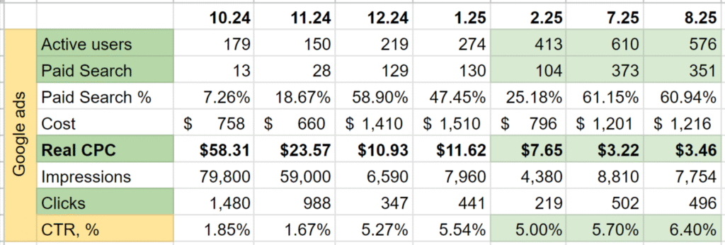 - Real CPC dropped from $58.31 to just $3.22 — that’s a 94% reduction in cost per click.
