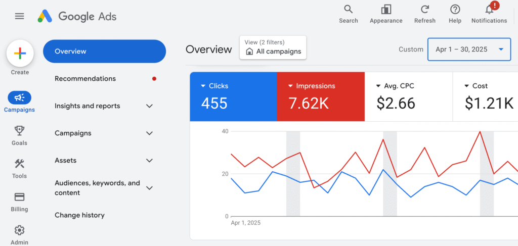 Before early 2025, APlus Cabinetry was running ads on their own. Their ad performance was poor: